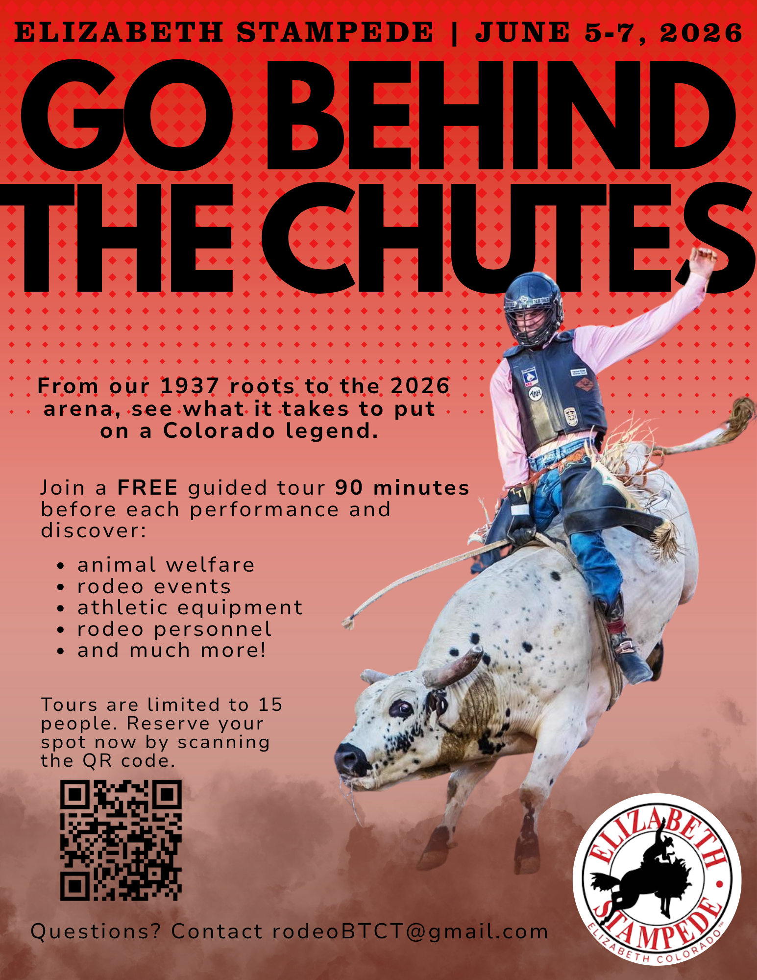Ever wonder what really happens behind the chutes? The Elizabeth Stampede’s Behind the Chutes Tour gives fans an up-close look at the inner workings of a professional rodeo. This guided experience takes you beyond the arena and into the heart of the action—where stock contractors, contestants, and rodeo personnel prepare for every performance.